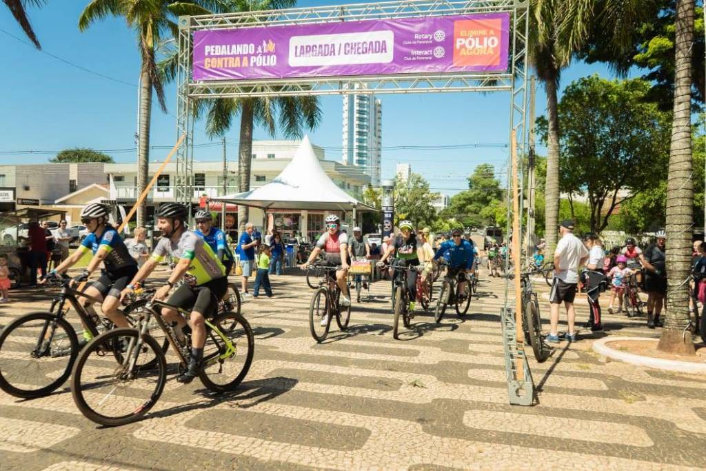 O “Pedalando Contra a Pólio” foi realizado pelos quatro Rotary Clubs de Paranavaí — Fazenda Brasileira, Montoya, Arenito e Entre Rios — juntamente com o Interact. Trata-se de um projeto do Rotary que mobiliza a comunidade por meio de um passeio ciclístico para conscientizar sobre a erradicação da poliomielite e arrecadar recursos para o Fundo Pólio Plus. A iniciativa reúne cerca de 300 pessoas entre ciclistas e voluntários, oferecendo um percurso organizado, ações educativas e apoio das equipes de saúde. Os beneficiários são os participantes e a comunidade alcançada pela mensagem de prevenção, contribuindo diretamente para a proteção de crianças em todo o mundo.